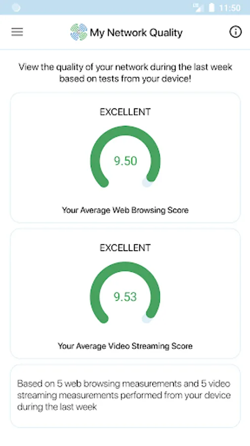 In the “Connection Test” section, you can test your own network experience and get instant feedback how well your network performs for web browsing and video streaming. You can also see how well your network performed during the last week based on measurements from your device in the “My Network Quality” section.