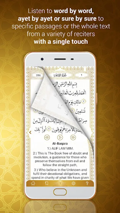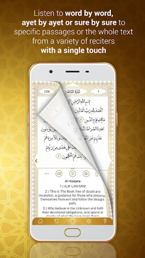 -Listen to word-by-word, ayet by ayet or sure by sure to specific passages or the whole text from a variety of reciters with a single touch.