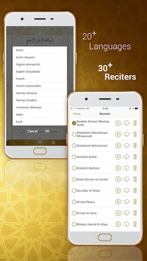 -Chose from over 35 different reciters to listen to the Quran in the voice you prefer.