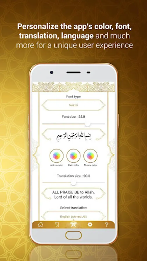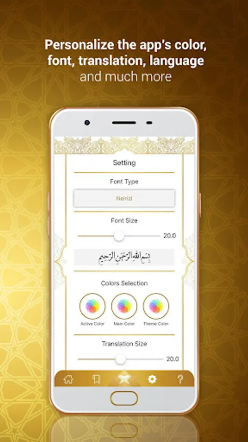 -Personalize the app’s color, font, translation, language and much more