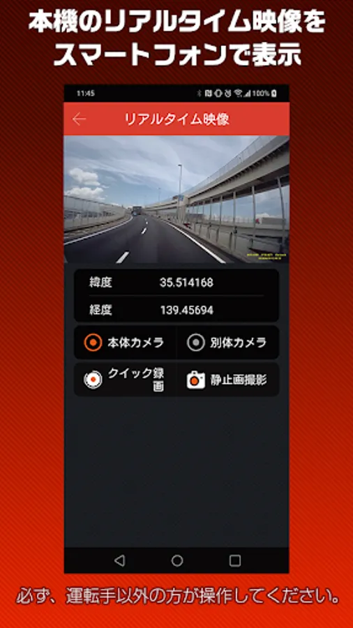 ・ドライブレコーダーのリアルタイム映像をスマートフォンで表示