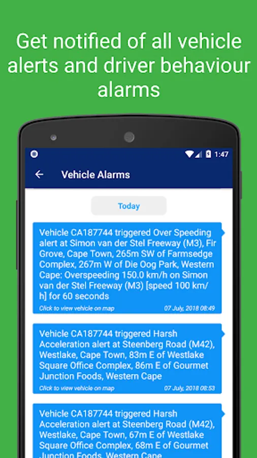 Access and Monitor all your vehicles from any location in the world, at any time. With the new CellStop mobile fleet management application you can view all your vehicles on a single map in real time Access information about location, speed and trip reports and get alarm notifications of all fleet vehicles.