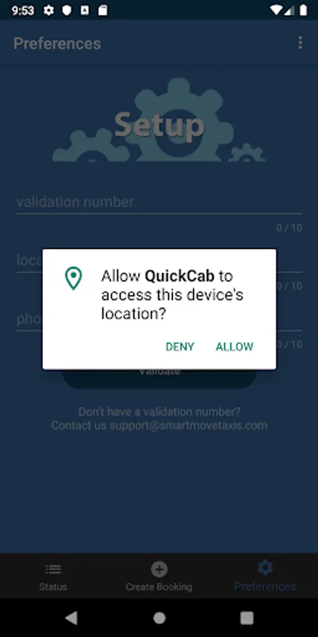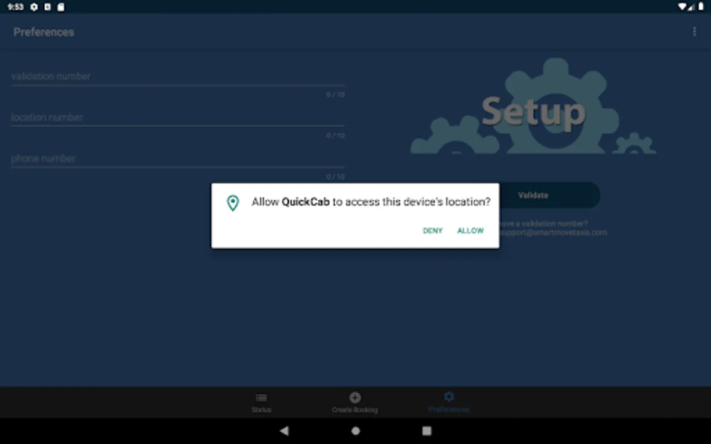 QuickCab must be configured with a location number which identifies the location of the unit. This location number is obtained using the Manage Booking Locations section of the SmartMove fleet management website - http://www.smartmovetaxis.com