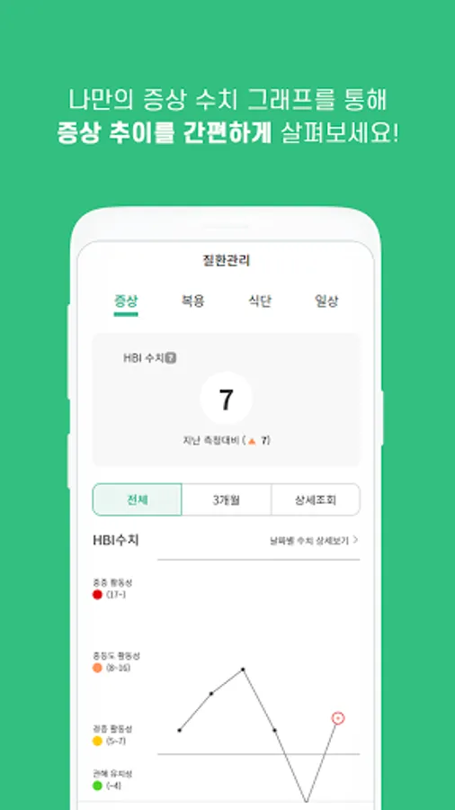 -You can perform a stress check, and create a report by recording disease activity through a self-diagnosis questionnaire (HBI/SCCAI) that does not require hospital test records, and you can easily and conveniently examine the trend of symptoms.