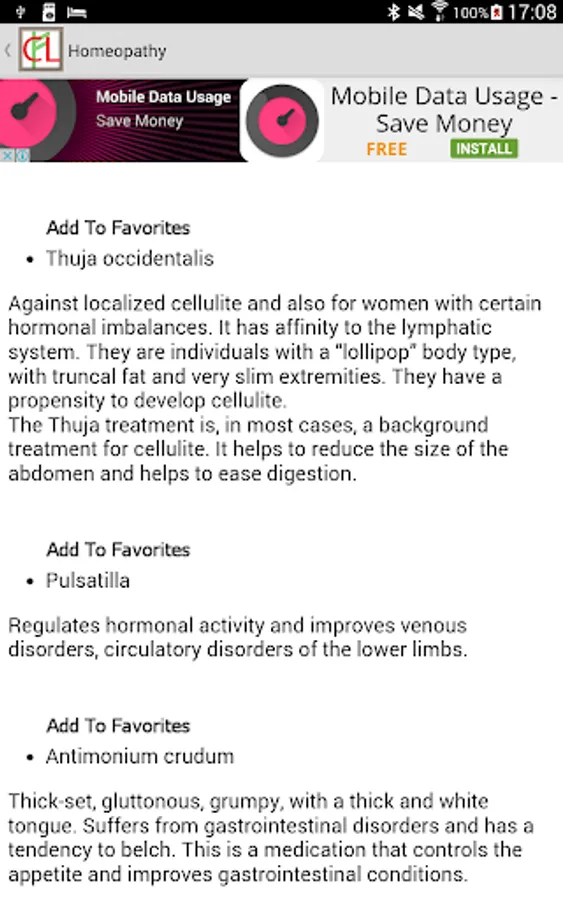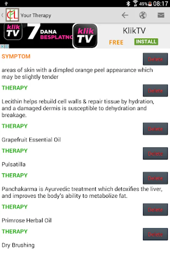 Finally, tap on Your Therapy. You will see a list of symptoms (in orange) mixed with a list of remedies (green) that you have selected. Taken together, the symptoms and the remedies form your therapy. Now all you have to do is obtain the remedies and start the process of eventual improvement of your health.