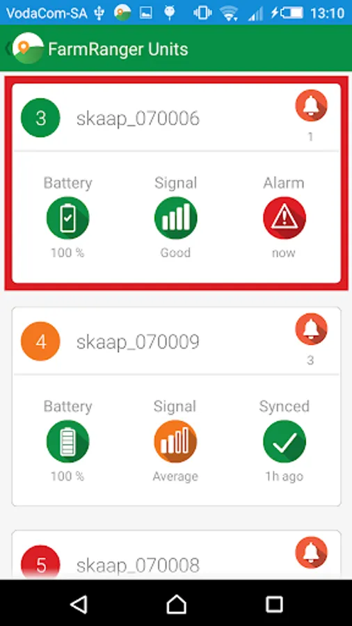 The FarmRanger app works along with FarmRanger Livestock Security Collars to generate alarms on the livestock farmer's mobile phone in the event of theft or predator attacks. The GPS position and movement of the animals are shown on a map, and the farmer can act quickly to prevent damage.
