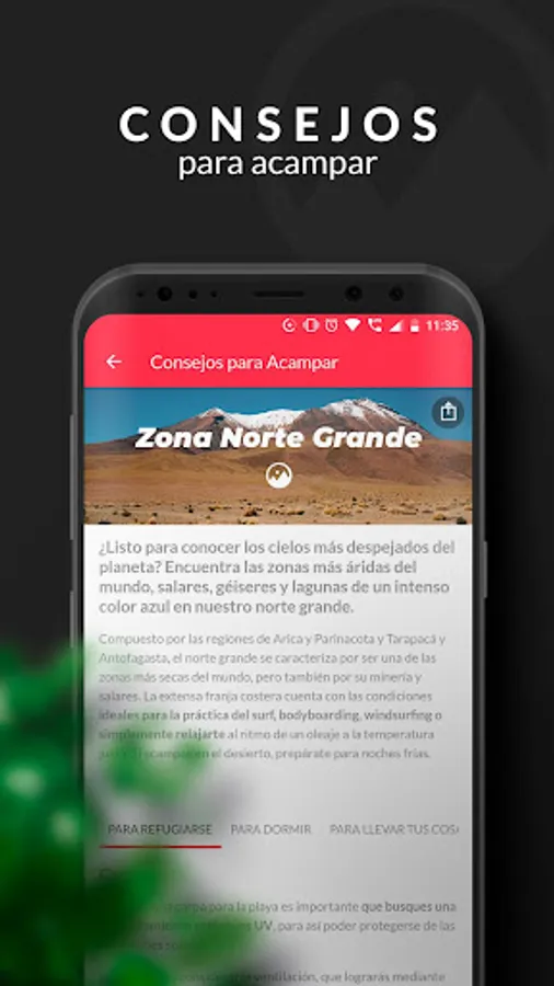 Problems with the services? In this app you can search for a campsite for its services and if someone says they have it but it is not, you will have the option to write it down in the comments so everyone can enjoy and optimize the search. If you do not want to search by service and you are more interested in doing it by location, you can find camping near the different cities of Chile. Do not you care which region to go to but you want to go to a good campground? We will periodically recommend campsites with the best experiences so you can enjoy your stay to the fullest.