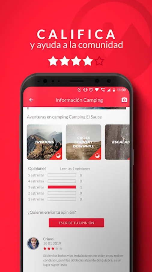 In this app you can find through geolocation the campsites closest to your location, you can check if they are well evaluated by other users and you can evaluate them. Also, if you are in a campsite that is not in our app, you can upload it and recommend it.