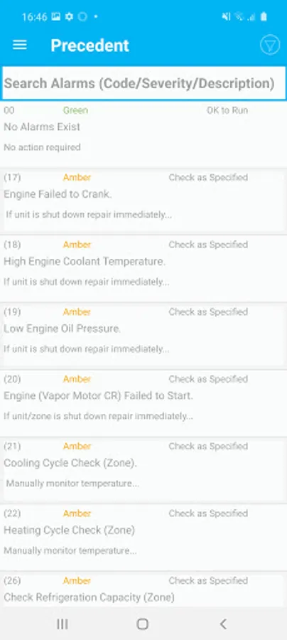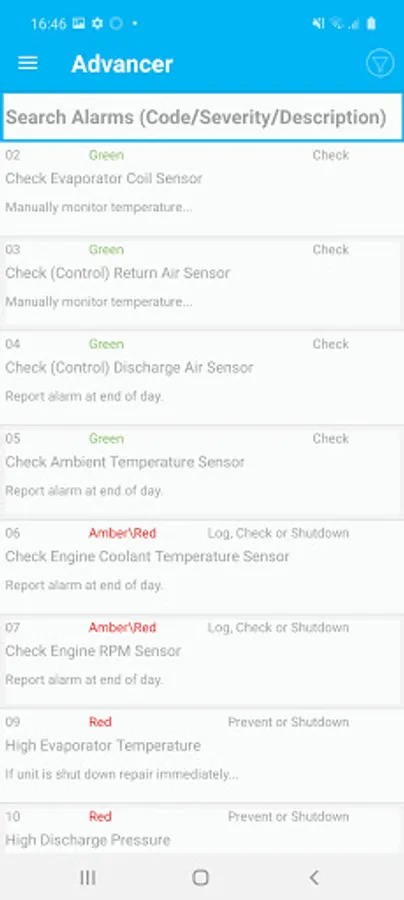 Check Alarm Codes & view recommendations.