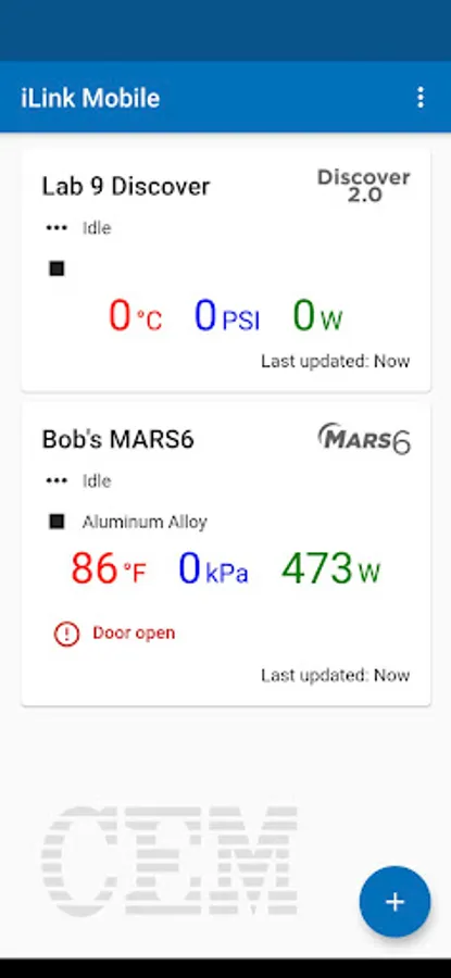 iLink by CEM is the solution for remote access to Discover 2.0, MARS6 and other iLink-equipped CEM instruments! Monitor multiple instruments from the start page. Get a closer look at any instrument, including instrument configuration, current run statistics, methods and previous runs, on the hub page. Start, pause and stop runs, create and edit methods, view and print sample prep reports.