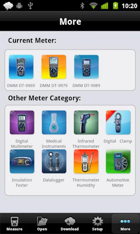 Meterbox(R) is a kind of smart mobile software for meters’ cloud computing. Using this software, the measured data can be transmitted to smart mobile via Bluetooth. Users can share the meter data with the cloud storage and cloud computing of the meters’ cloud service by a smart mobile. These can satisfy the continuous growing on-demand of business in the mobile internet era, and help users to achieve the functions which other meters can’t realize.