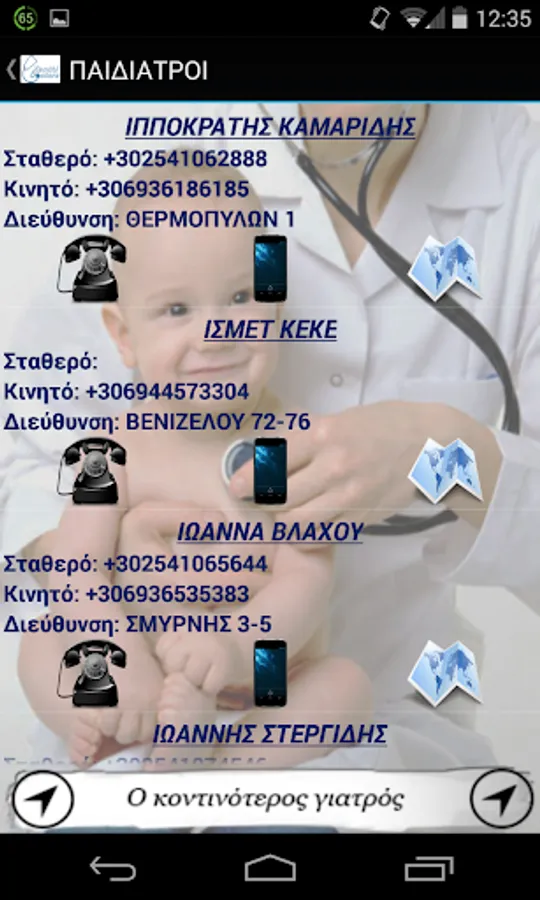 The program contains contact information and addresses of doctors Xanthi except dentists. The information I have received from the Association of Physicians of Xanthi.