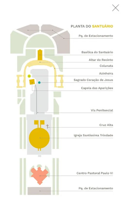 Always know what to visit in the Sanctuary through the offline map available in the "100 Anos Fatima" application.