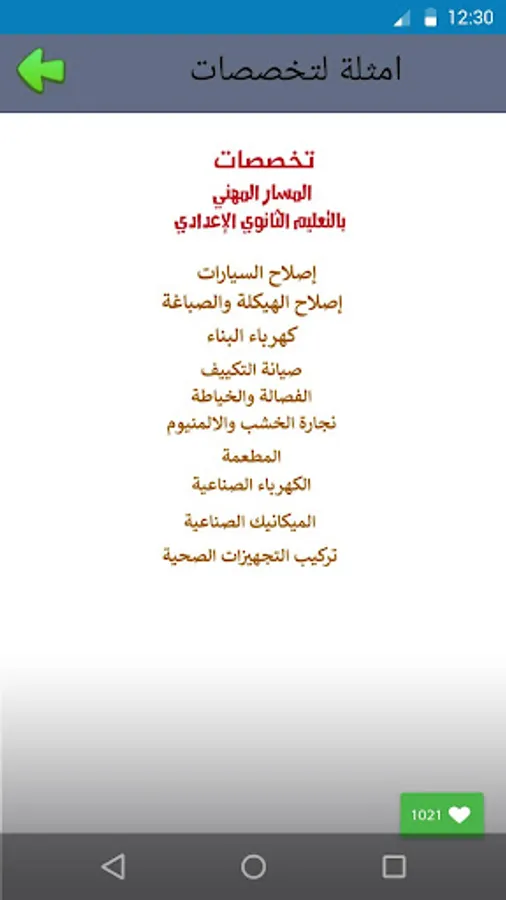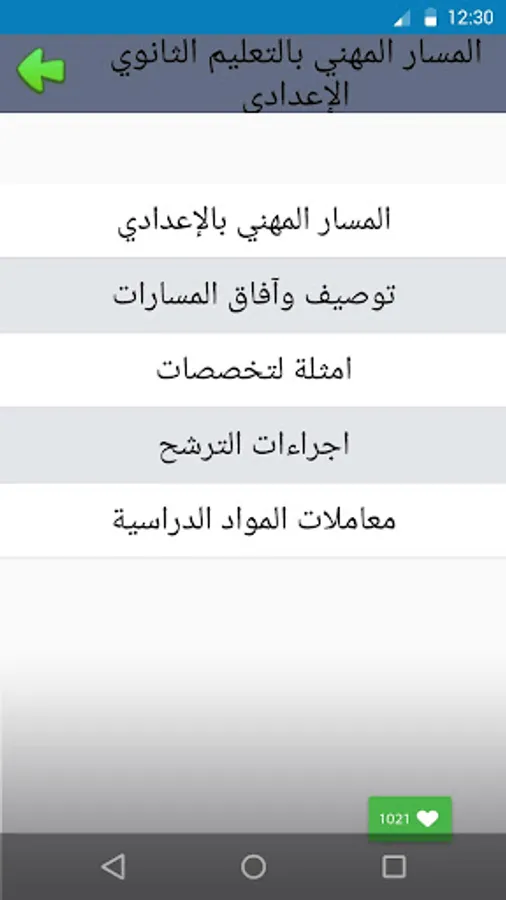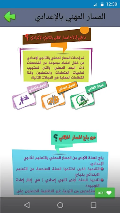 As an important process in improving the quality of education and training, and as an important process in the educational and professional path of the individual, is influenced by a range of objective and subjective factors such as family, school and the socio-economic environment ..., the individual's need for informed information and accompanying counseling directly or indirectly affect Directly on the selection of priorities and priorities. The student and student's need for continuous consultation and questioning of professional formations and aspirations is essential in the direction of the directive. This led me to design this application to introduce the secondary vocational track in order to provide information and facilitate access to it by the learners and their parents.