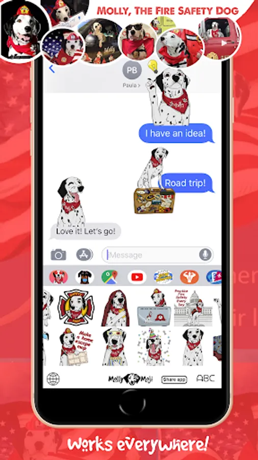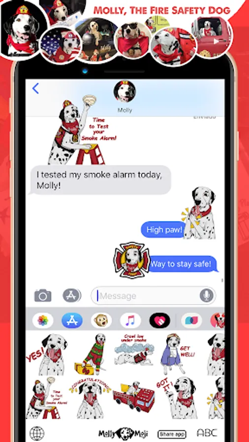 ヅ Open the app, select the Molly dalmatian emoji and share it wherever you like