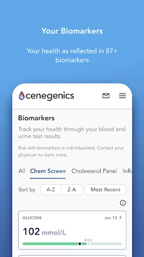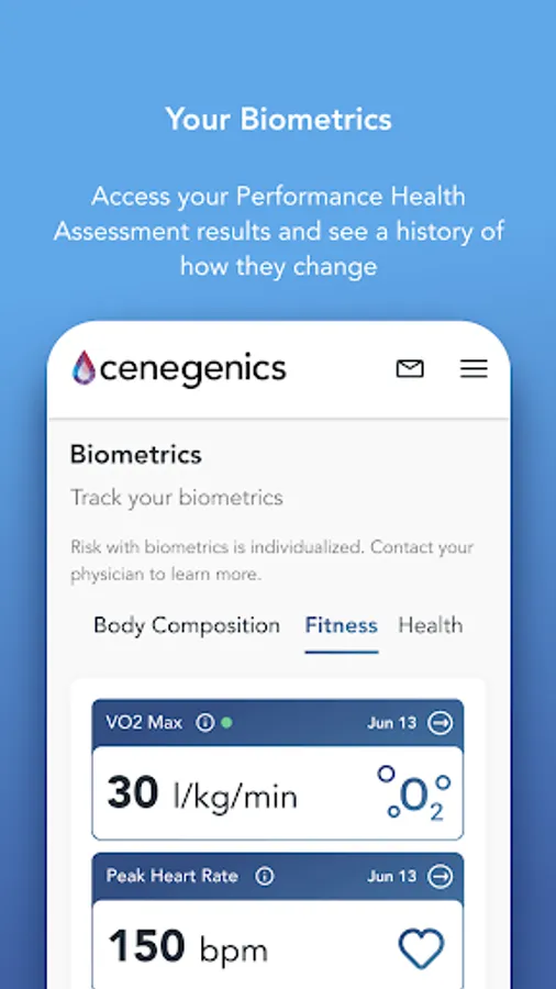 As a global leader in Performance Health Age Management, Cenegenics continues to innovate with our new HIPAA-secure app that supports your transformation to live a longer, more energized life. With our app, you can securely communicate with your Performance Health Team, track your biometric and biomarker performance, manage your regimen with nutraceutical and prescription orders, and view all your labs in conjunction with your Cenegenics Performance Health Program.