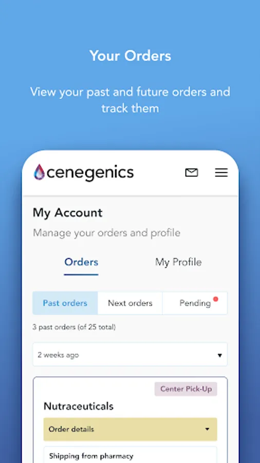 This app is only for Cenegenics clients. If you are a client and don’t have access to the app, contact your Patient Experience Coordinator. If you aren’t a client but are interested in learning more, call 866-240-0035.