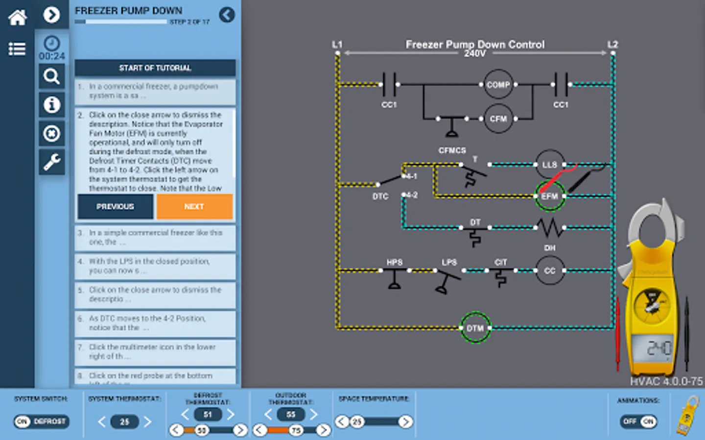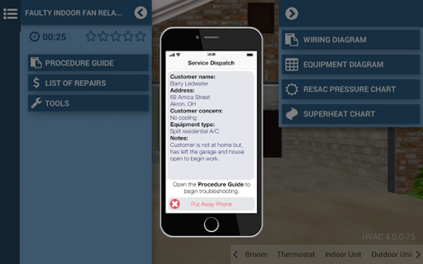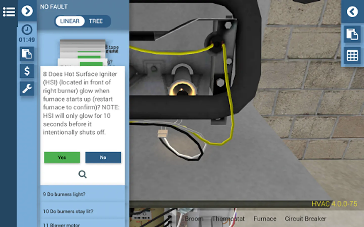 DELMAR ONLINE TRAINING SIMULATION: HVAC is a 3-D, immersive simulation that offers a rich learning experience that mimics field performance. It challenges learners to master diagnostic and troubleshooting skills across seven pieces of HVAC equipment – Gas Furnace, Oil Furnace, Gas Boiler, Split Residential A/C, Commercial A/C, Heat Pumps, and Commercial Walk-in Freezers. Delmar Online Training Simulation: HVAC offers approximately 200 scenarios that allow students to troubleshoot and build diagnostic and critical thinking skills. Two modes within the simulation promote incremental learning: Training Mode and Challenge Mode. Training Mode has fixed scenarios to aid in familiarizing the user with the equipment, the problem needing attention, and using the simulation. Challenge Mode has randomized scenarios within three levels: Beginner, Intermediate, and Advanced. Both modes require learners to diagnose a fault or faults and perform the repair successfully while materials and labor costs are tracked. Soft skills are also included within the simulation.