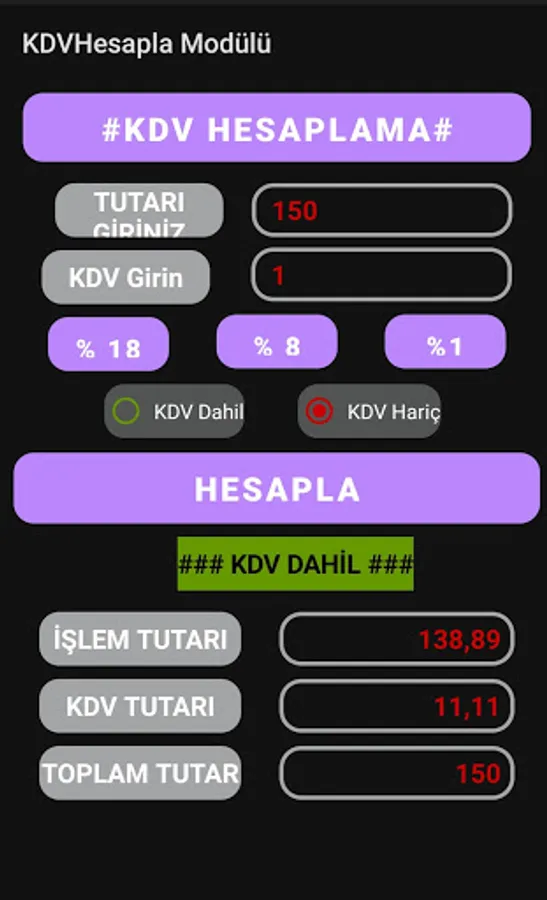 Easy VAT Calculation module with VAT included and excluding VAT and ready-made 1%, 8%, 18% buttons