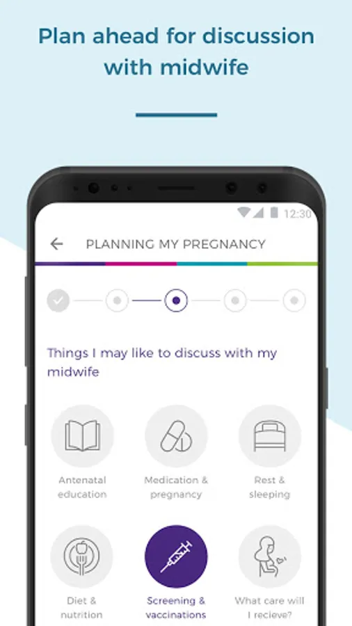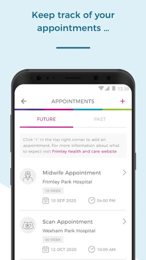• Helps you to manage your pregnancy healthcare - allowing you to add appointments and note things that you want to ask when you meet your midwife or other care professional.