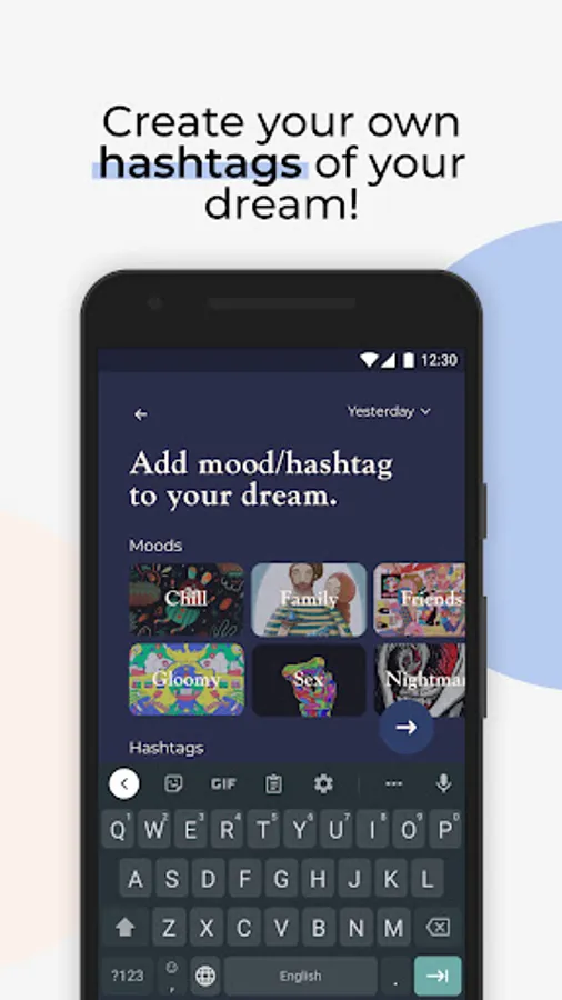 - Add hashtags: To manage your dreams you can add different hashtags in order to manage their category so that you can find them easily if it re-occurs.