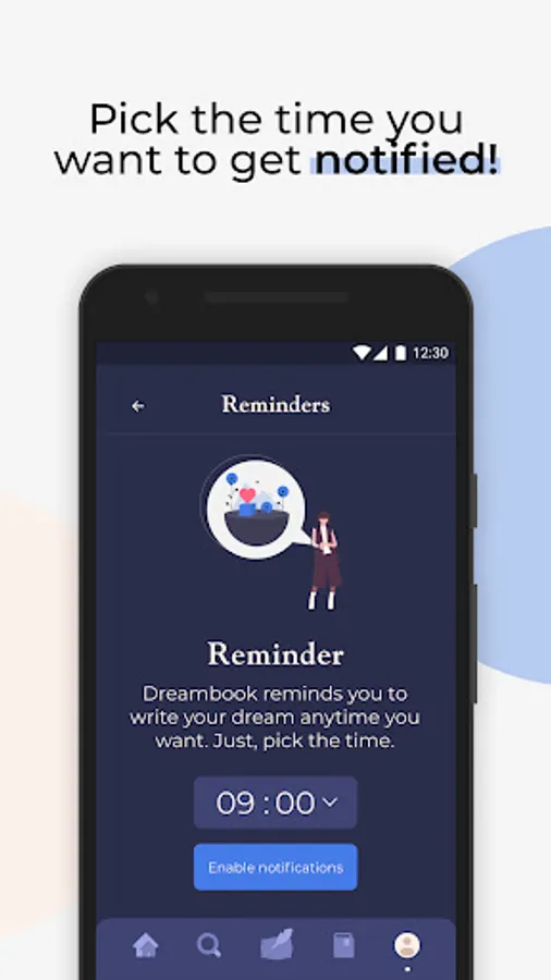- Set Reminder: Let us remind you to take note of your dream by setting a reminder.