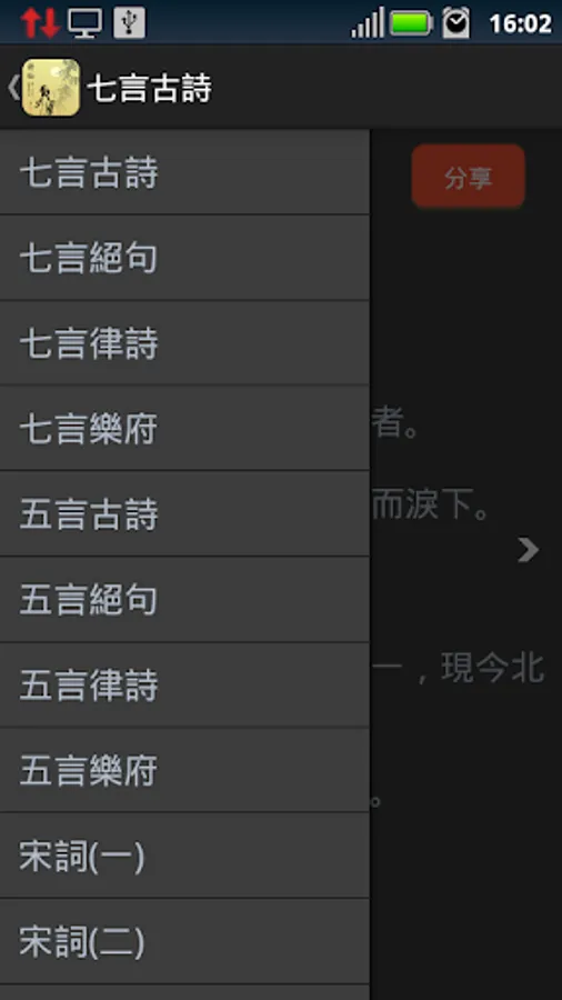 為了方便您的閱讀,本應用對唐詩宋詞做了以下分類: