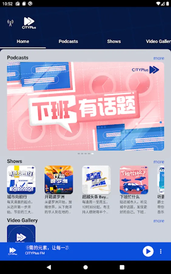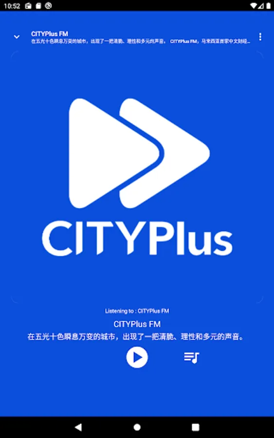 CITYPlus FM是马来西亚的中文商业电台,“环球直通”是我们的标语。我们立足马来西亚多元种族社会,提供不同视角的资讯,展现马来西亚华裔的世界观。