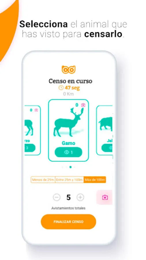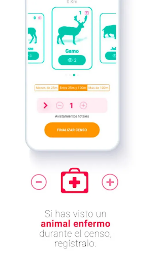 Census takers can select different types of censuses depending on the target species, as well as record observations of diseased individuals, and number of captures. For each census, the species observed can be identified, and the time, distance, latitude and longitude of each observation can be recorded at all times. In this way, the census taker will be able to have a much clearer vision of the evolution of the game species in its limits, and with the union of all the information it will be possible to make comparisons at the regional and national level that help to improve the design of the closure orders. .