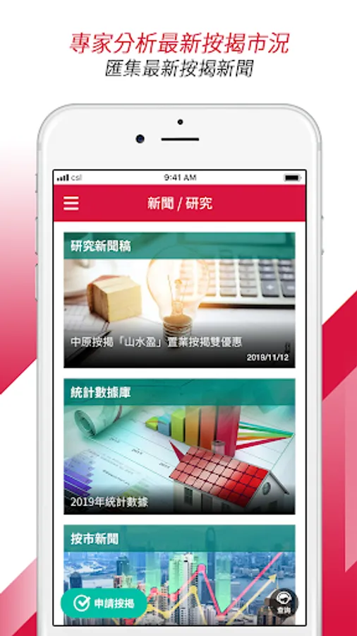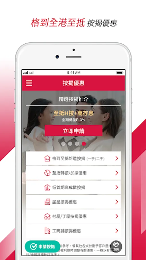 本軟件結合提供多元化功能,讓您緊貼樓按最新資訊,計劃置業財務安排,並可即時提交按揭轉介申請。