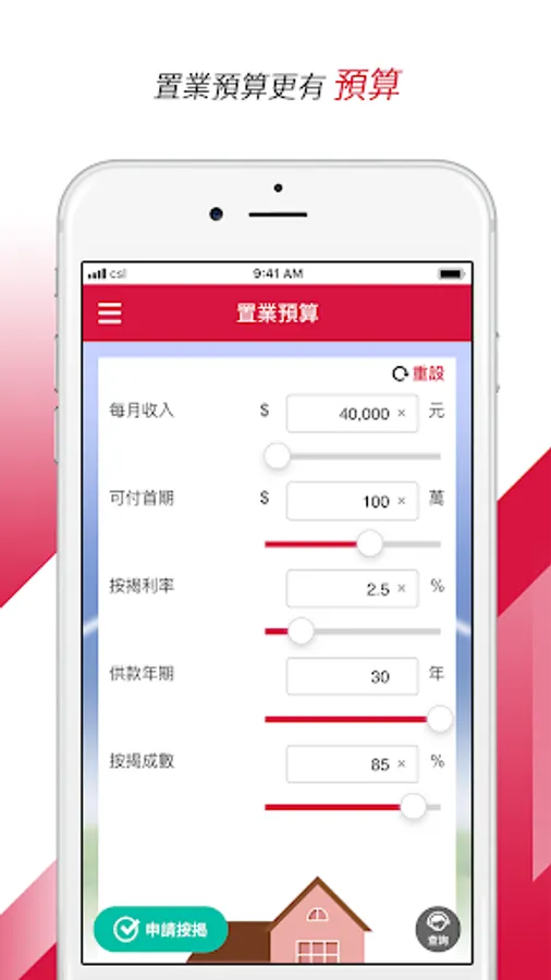 置業預算 - 只需輸入簡單資料,即時為您進行壓力測試,讓您了解自己可負擔樓價,更有預算地置業。