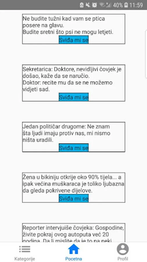 -mogucnost označavanja viceva sa 'sviđa mi se'
