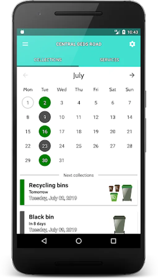 + Collection calendar with optional bin day reminders