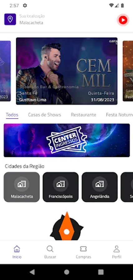 It has never been so easy to buy and store your ticket on your mobile phone. In the Center Tickets application, you have access to events in your region, you can buy without leaving home, using only your cell phone, very easily and quickly.