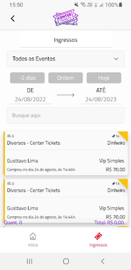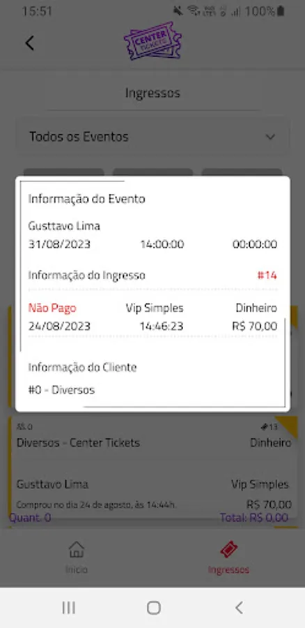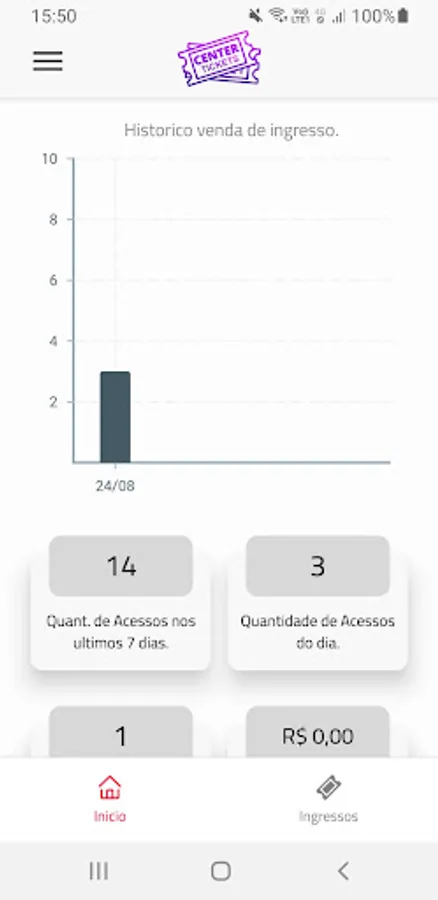 Center Tickets Sales application, this application is made for Event Promoters, you will be able to track ticket sales, see ticket values, view the events you are responsible for, all in a single panel. You will receive notifications of ticket sales, among other functions.