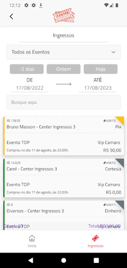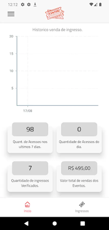 Application Center Ingressos Vendas, this application is made for Event Promoters, you will be able to track ticket sales, see ticket values, view the events you are responsible for, all in a single panel. You will receive notifications of ticket sales, among other functions.