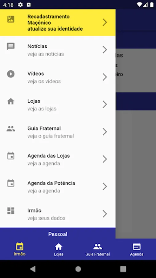 This application was developed in order to facilitate access to information about the brother of a Masonic Lodge, in it you can view your data, know who the birthdays of your and other stores are, you can also access the Fraternal Guide, being possible to find out who are the active brothers of a lodge, search for brothers, view the Bulletin and keep informed of all Masonic events.