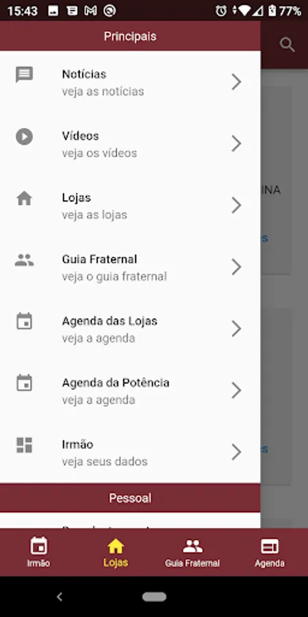 This application was developed in order to facilitate access to information about the brother of a Masonic Lodge, in it you can view your data, know who the birthdays of your and other stores are, you can also access the Fraternal Guide, being possible to find out who are the active brothers of a lodge, search for brothers, view the Bulletin and keep informed of all Masonic events.
