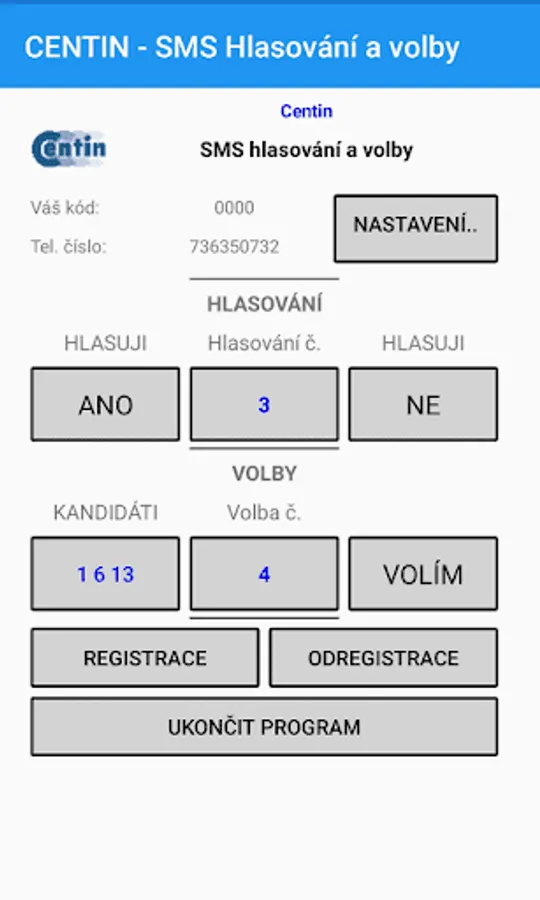 Centin SMS Volby Screenshots