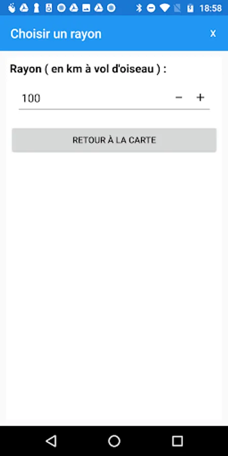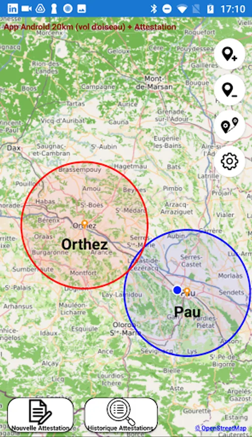 Displays the 10 km area as the crow flies around your home in which you are allowed to travel.