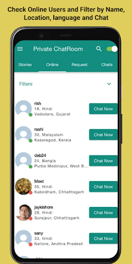 Create your profile, add photos and go browsing thousands of online users in your city. You can see users who belong to your age group and city. If you like anyone, simply just express interest by sending a message. If they like you too, you can start a conversation on Private ChatRoom with each other and set up your date offline.