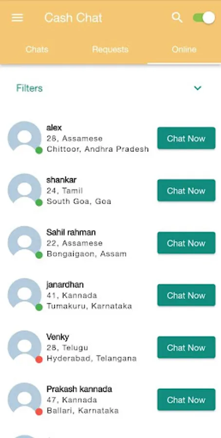 Create your profile, add photos and go browsing thousands of online users in your city. You can see users who belong to your age group and city. If you like anyone, simply just express interest by sending a message. If they like you too, you can start a conversation on Cash Chat with each other and set up your date offline.