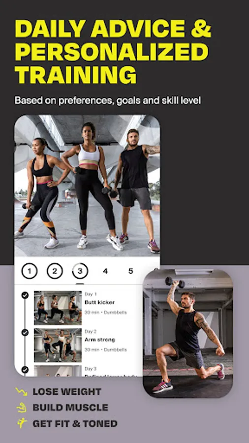 Pick a training style and get ready to sweat: strength, HIIT, muscle-building, Pilates, yoga, boxing, MMA, and more. Train at home or in the gym, and access workouts that are right for you – search by equipment, time, body part, or style.