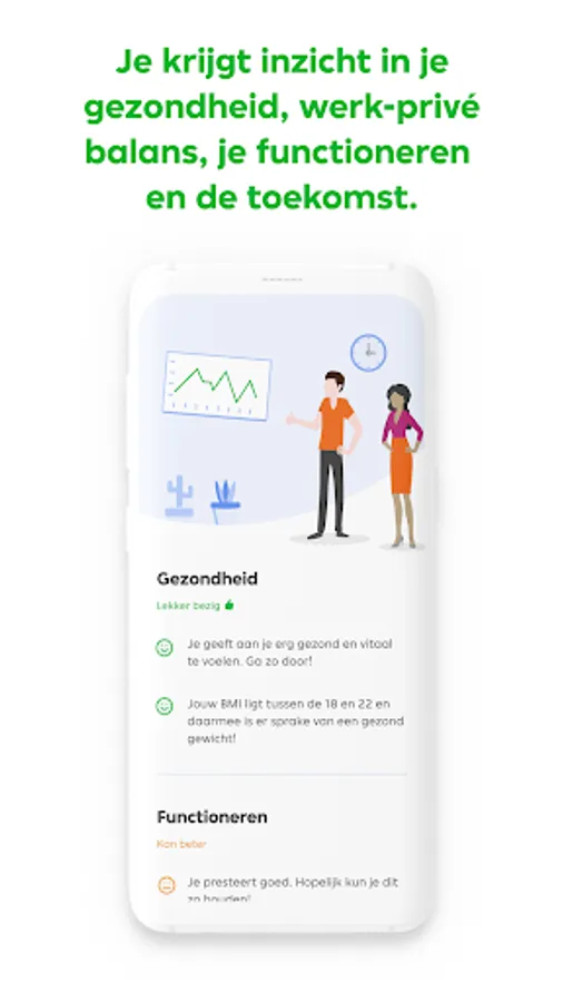 • You quickly gain insight into your health, work-life balance, your performance and the future.