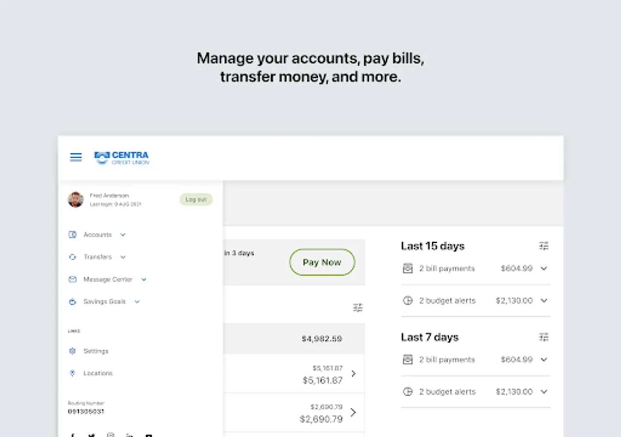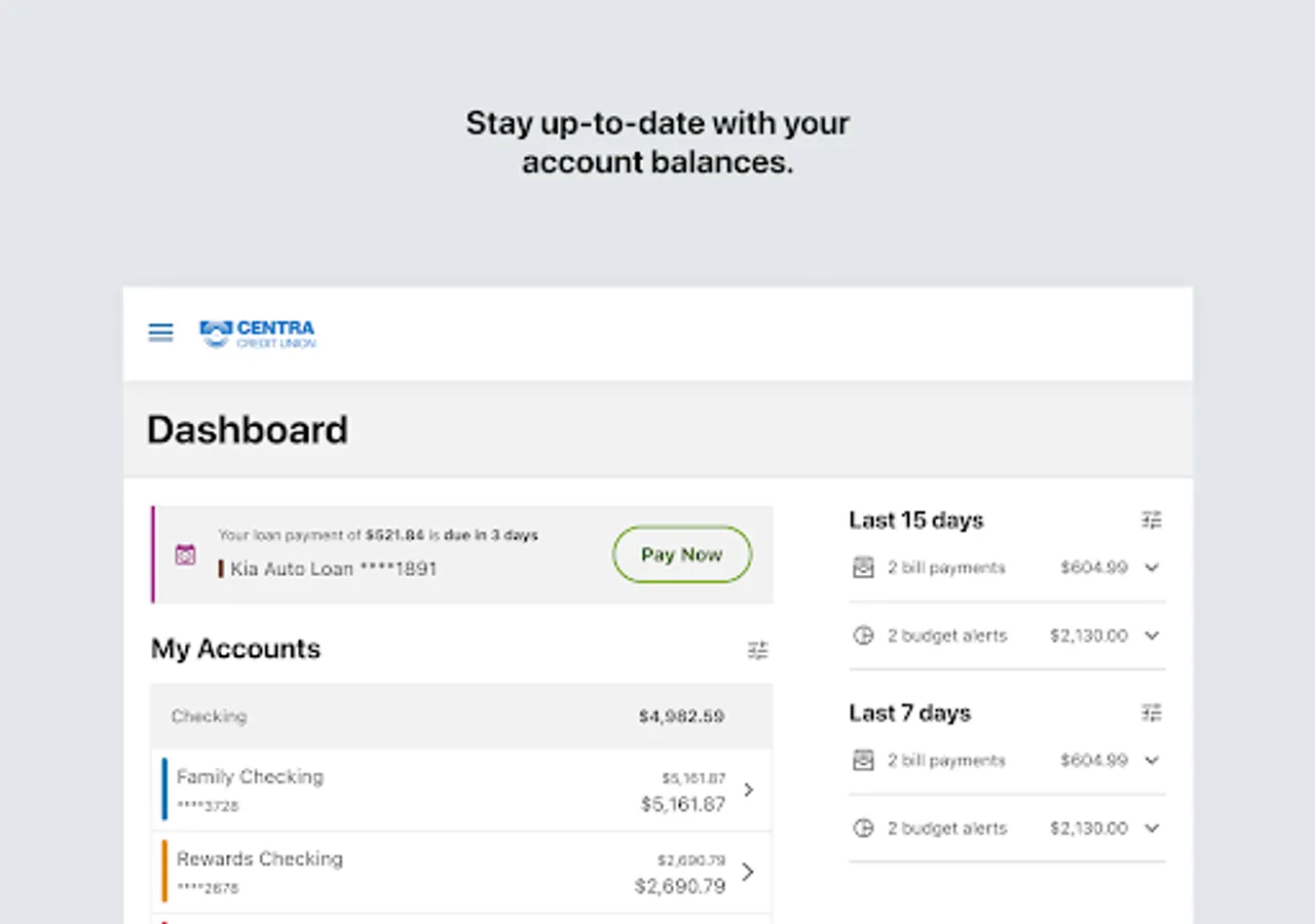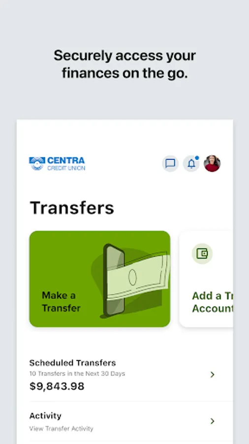 Banking digitally at Centra means you can transfer money, pay bills, send money to friends, and monitor your account activity from anywhere, anytime.