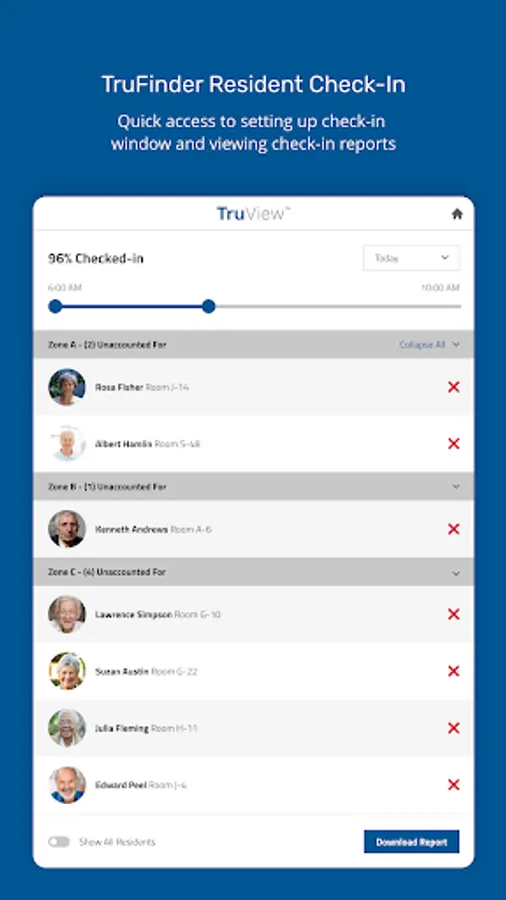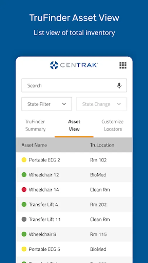 TruFinder is a mobile app for CenTrak’s TruView system. IoT'ing your Emergency Call and Wander Management has never been easier. Scan in your Geo Pendants from your mobile app in real time, update a Resident profile with a photo, find people and things, setup and view resident check-in reports and explore Location Tracing reporting with TruFinder mobile application.