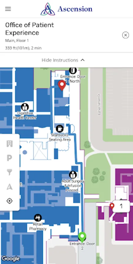 ● Get driving directions: Simply input your address and destination, and Ascension Maps can guide you to our locations and parking areas.