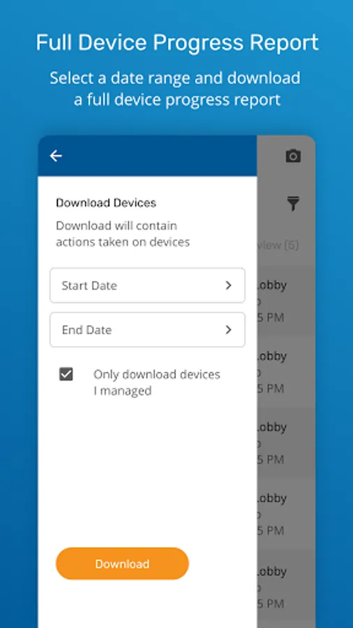 Progress reports are also available to show activities on your devices, such as found devices, battery changes, and device swaps.