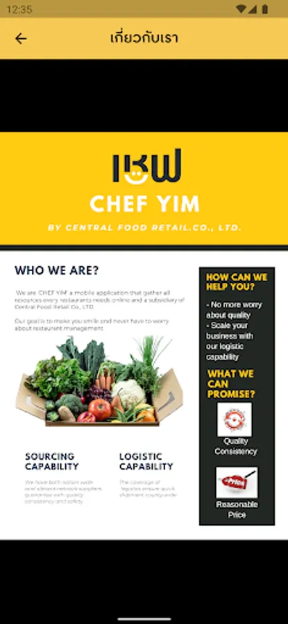We are a one-stop service for restaurants on E-commerce platform offering high-quality ingredients, store supplies, and services. Through sourcing, supply chain, and technology capabilities of Central Food Retail, the quality, price, and customers' satisfaction are our priority.