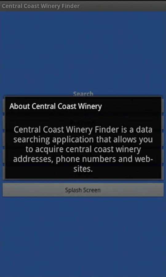 Our application provides a data searching option that allow the user to find any winery establishment in the Central Coast region of California. The search feature is very simple and easy to use.